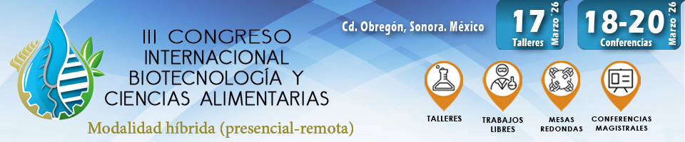 El III Congreso Internacional de Biotecnología y Ciencias Alimentarias se llevará a cabo del 17 al 20 de marzo de 2026. Les invitamos cordialmente a formar parte de este encuentro que reúne mentes innovadoras y apasionadas, y agradecemos su interés y participación activa en cualquiera de las modalidades disponibles.