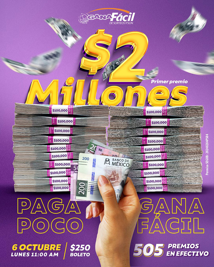 Compra tu boleto con solo $250 y participa para ganar hasta $2,000,000.00 con el Sorteo Gana Fácil de Sorteos ITSON!